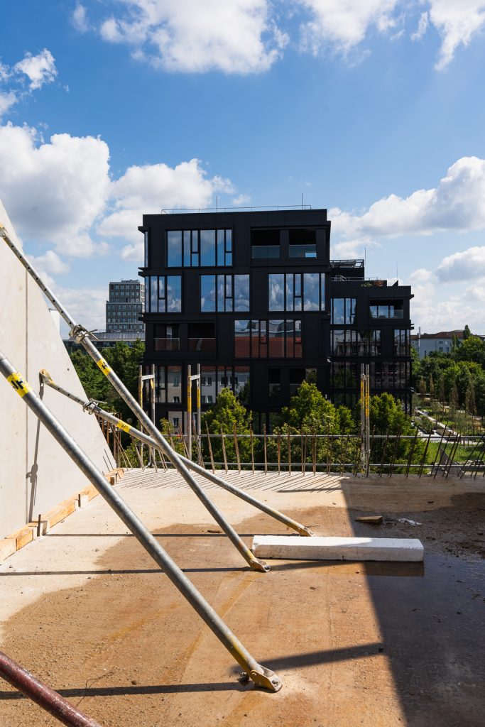 Das neue Objekt, ein hochwertiges Bürogebäude mit rund 2.800 Quadratmetern BGFo, ist ebenfalls ein Vorhaben der 𝐃𝐅 𝐃𝐞𝐮𝐭𝐬𝐜𝐡𝐞𝐅𝐢𝐧𝐚𝐧𝐜𝐞 𝐃𝐞𝐯𝐞𝐥𝐨𝐩𝐦𝐞𝐧𝐭 𝐆𝐦𝐛𝐇. Der Bauhherr kann somit von den bereits bezogenen Räumlichkeiten im H29 ganz einfach die 𝐑𝐨𝐡𝐛𝐚𝐮-𝐅𝐨𝐫𝐭𝐬𝐜𝐡𝐫𝐢𝐭𝐭𝐞 gegenüber beobachten. Das 𝐏𝐁𝐊-𝐓𝐞𝐚𝐦 übernimmt wie gewohnt Planung und Objektüberwachung für das Gewerk Elektrotechnik.